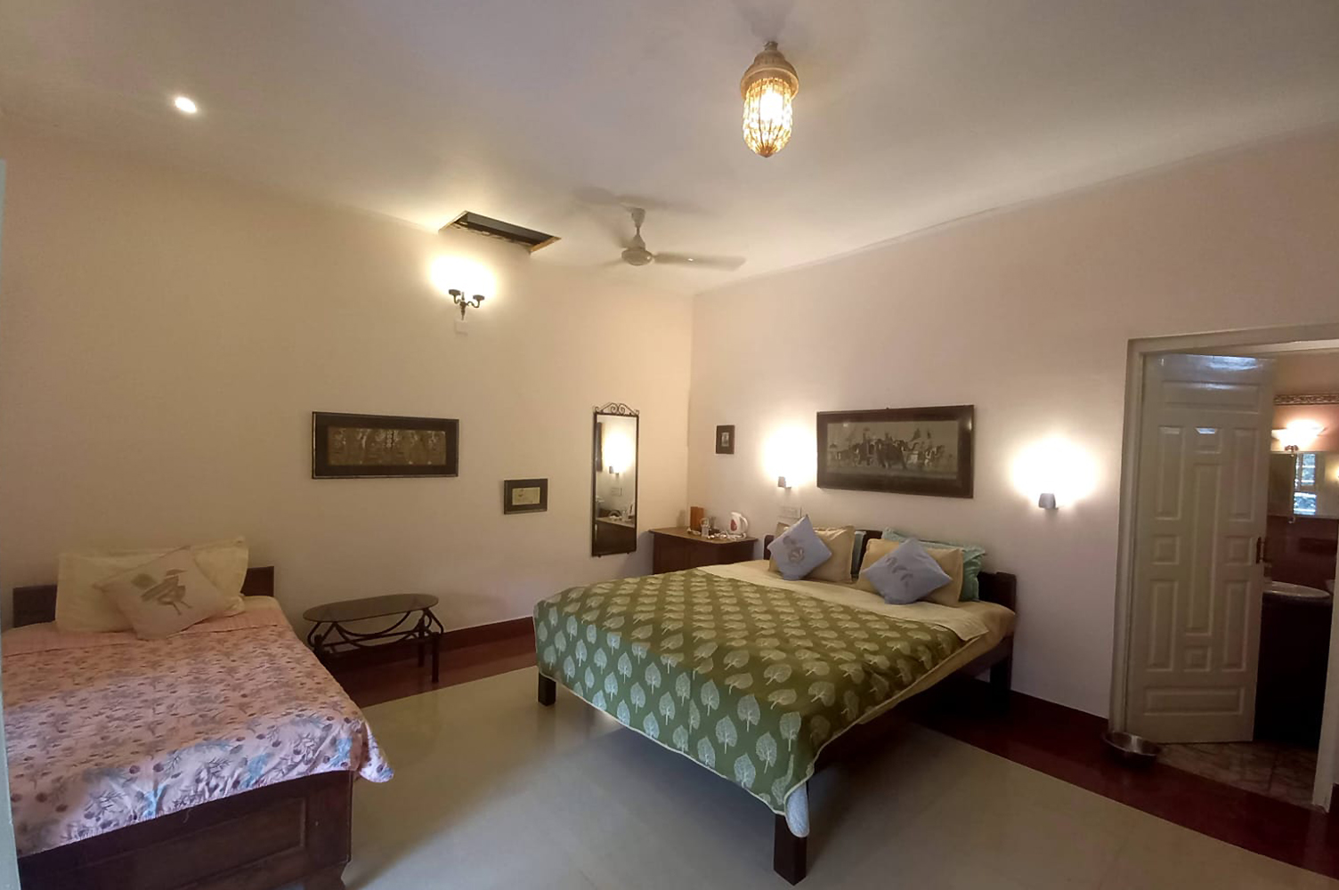 room has smart TV, AC, Tea making area and attached bathroom with geyser.